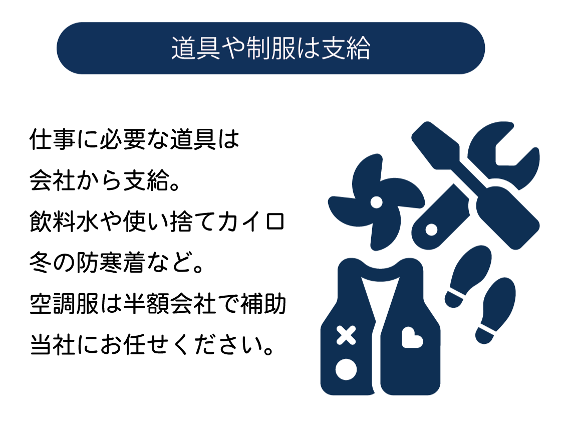| 待遇 | 昇給あり、賞与年2回、交通費支給、各種社会保険完備、皆勤手当、家族手当 |